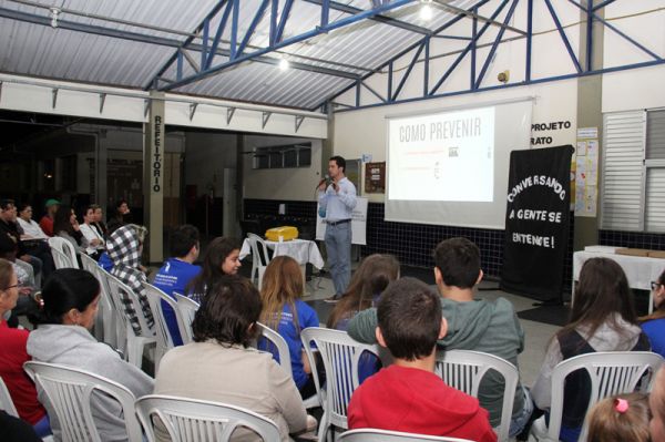 Fotos » 02/05/17 - Projeto Conversando a gente se entende - 2º Tema - Fatores de riscos e fatores de proteção na prevenção ao uso de álcool e outras drogas - EM Hilda Anna Krisch