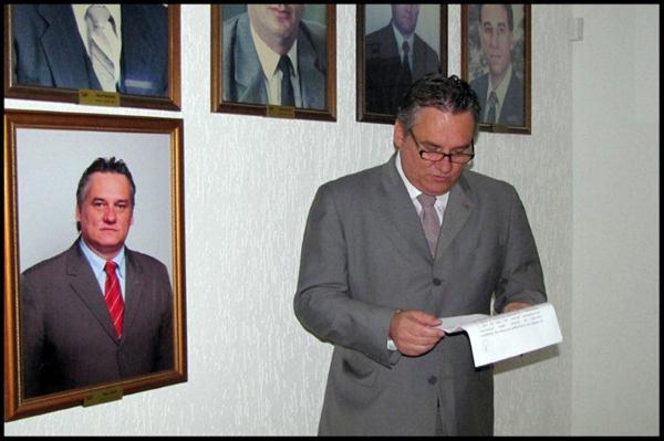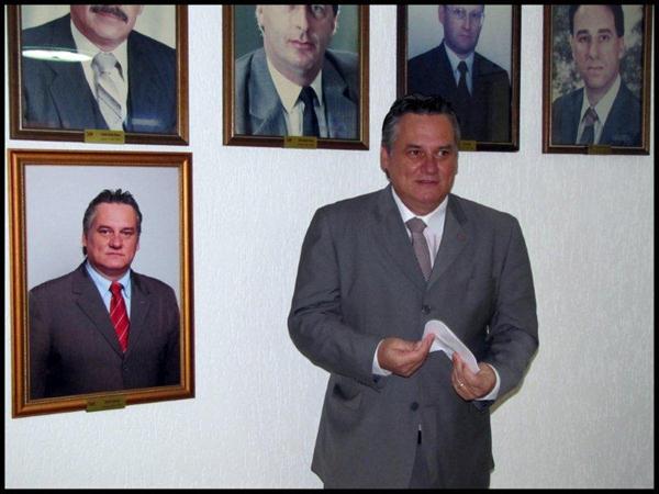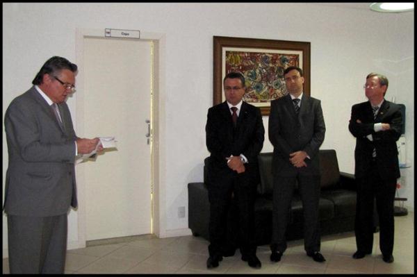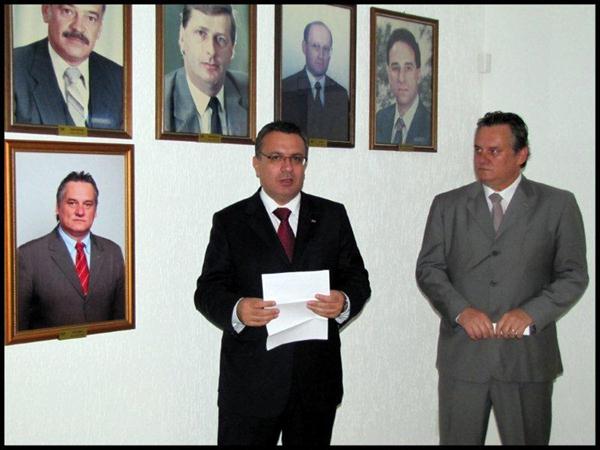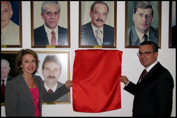 Cerimônia de descerramento da foto do ex-presidente Édelos Früstück, conduzida pelo atual presidente Miguel Teixeira Filho
