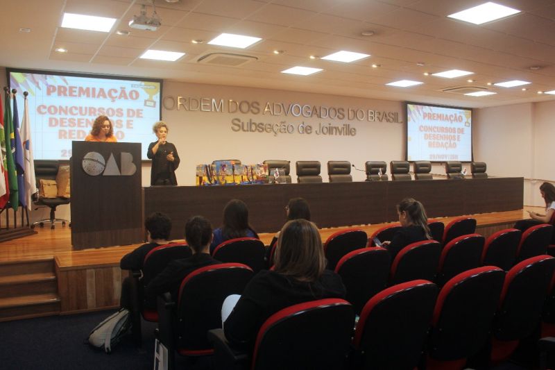 Na tarde de ontem (29), aconteceu a premiação dos Concursos de Desenhos e Redação no auditório da OAB Joinville.