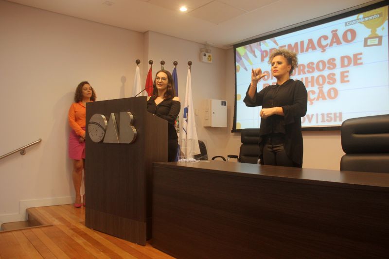 A diretora executiva de políticas educacionais da Secretaria de Educação de Joinville, Giane de Oliveira, falou do impacto que o projeto “Tempo de Avançar” teve na vida dos alunos das escolas municipais de Joinville e ressaltou a qualidade do trabalho desenvolvido pelos alunos participantes do concurso.