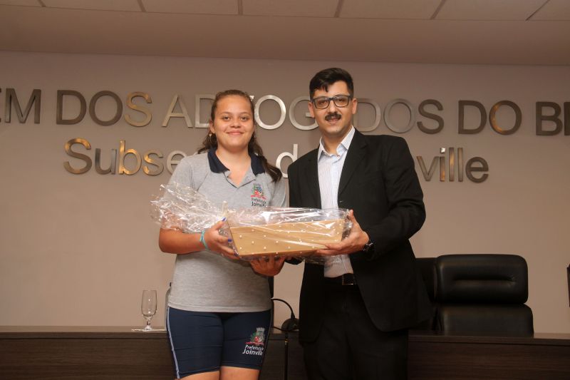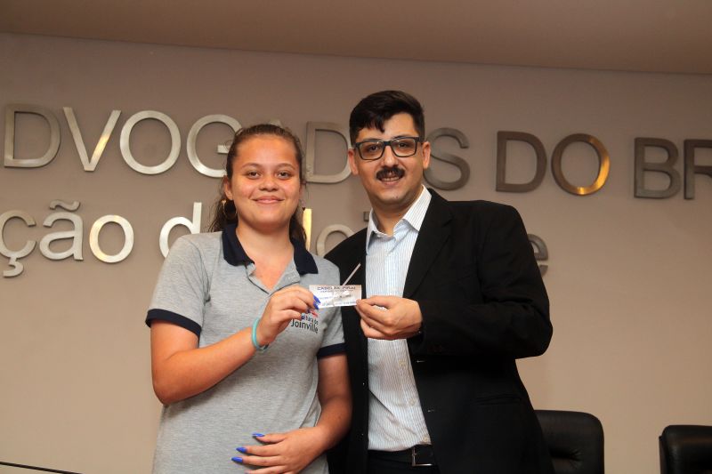 Estiveram presentes o presidente da OAB Joinville, Óliver Jander Costa Pereira; o secretário-geral adjunto, Rafael Luiz Siewert; a tesoureira, Kathleen Zago Appi Lótici; a presidente da Comissão "OAB Vai à Escola", Caroline Luise Francisco; a conselheira, Elioena Elias Silveira Freire; a vice-presidente e o membro da Comissão “OAB Vai à Escola”, Ligia Manchenho Portilio e João Victor Perini Luz, respectivamente.